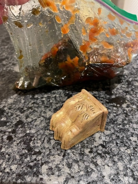 After a few quick coats over the next few days, i waited the recommended curing time for the paint i had left over from a previous project, before applying a wax coat to maintain a flat finish and durable protection. while the wax cured, I shifted gears to the old hardware that had years and years of dirt and grime discolor them. I decided to try a hack I found online using ketchup, and thought this was the best time to try it, aiming not to spend any money. I was absolutely shocked the following day when i discovered a beautiful brass finish underneath.